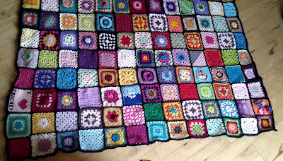 Så blev jeg færdig med at hækle alle firkanterne sammen!